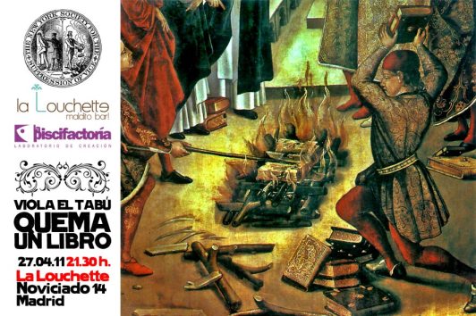 Se ha convocado, la noche del día 27 de abril, a la quema de libros en el bar La Louchette de Madrid. Convoca La piscifactoría que es lo que ellos llaman “un laboratorio de creación”. Se ve aquí la mano siniestra de Gonzalito Escarpa que parece que no aprendió nada en la Fundación Antonio Gala. Escarpa además de muchas otras cosas, todas ellas sin importancia, es poeta. Aquí va lo mejor de Gonzalito: