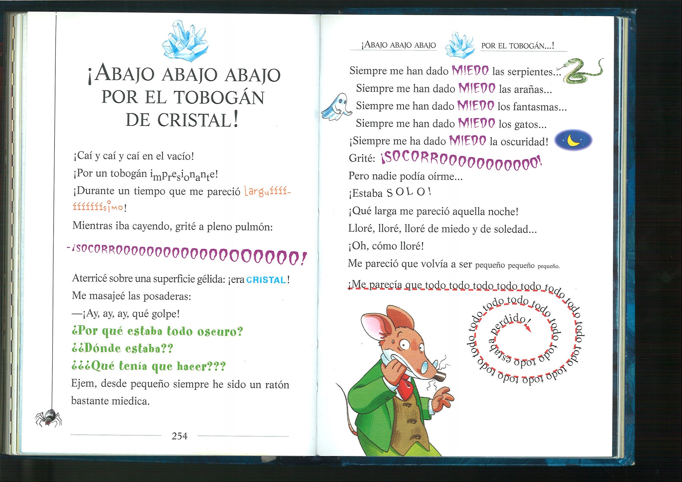 4.- En último lugar apunta Danielewski como razón para denunciar el plagio que si ya le resulta difícil vender sus libros a los hoy perroflautas letraheridos de 30 años que en su infancia leyeron libros normales con páginas de diseño estándar, cómo narices lo va a hacer a los jóvenes de dentro de 10 años que han pasado la infancia con libros como estos de Gerónimo Stilton. Que a ver qué sorpresa se van a llevar esos chicos en el futuro cuando abran sus novelas. Que ya está escuchando los comentarios –lo sueña en sus noches de pesadillas- : “Mira este, qué copión”. “Esto ya lo hacía Gerónimo Stilton”.