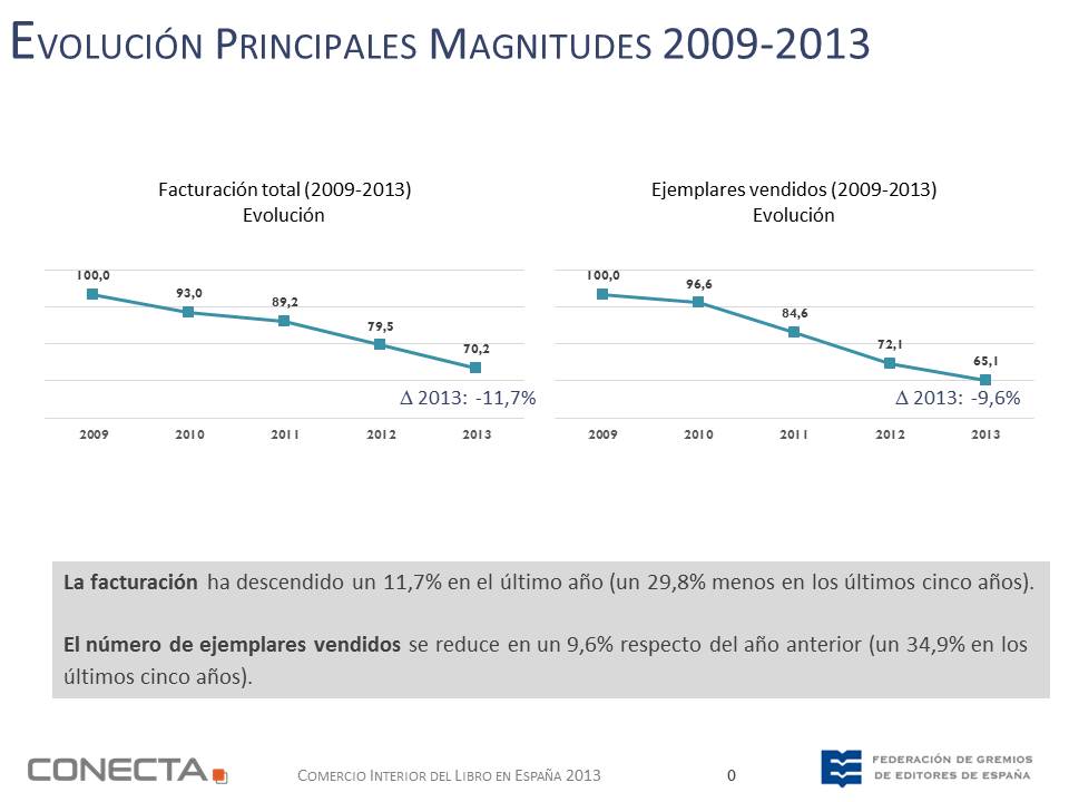 Hemos dejado pasar unas semanas para que todos los “listos” se despachen a gusto diciendo tonterías y estupideces. Se publicó el Avance de resultados del estudio que hace la Federación de Gremios de Editores de España y el Ministerio de Educación y resulta que el sector del libro factura un 11,7% menos que en 2012 y acumula una caída del 29,8% en los últimos cinco años (es decir: se ingresa casi un tercio menos que en 2009). Y en lo referido a ejemplares vendidos, la caída en los últimos cinco años es del 34,9%.