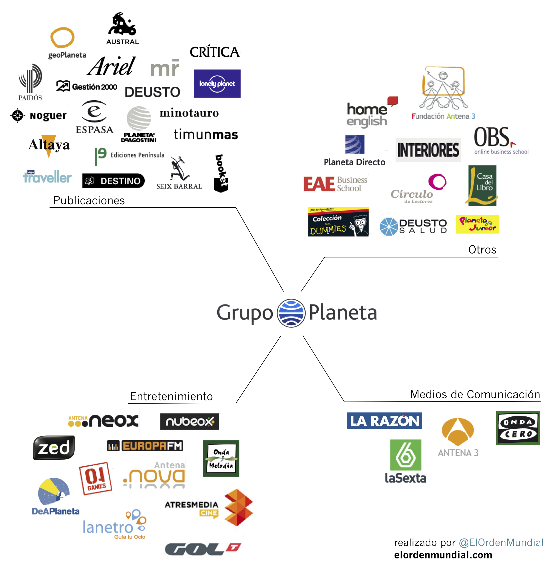 Lo mejor, como decíamos, está en LA RAZÓN. Era de esperar (LA RAZÓN pertenece al grupo Planeta), pero eso no quita valor al buen trabajo que sus profesionales ha realizado. Les recomendamos que compren el periódico de hoy domingo en papel. En la web muchos de los artículo, y sobre todo el gran gráfico, a doble página, describiendo todo lo que hoy engloba el imperio Planeta, no se encuentran. Sí se puede disfrutar en Larazón.es del largo (y completo) reportaje de Gema Pajares.